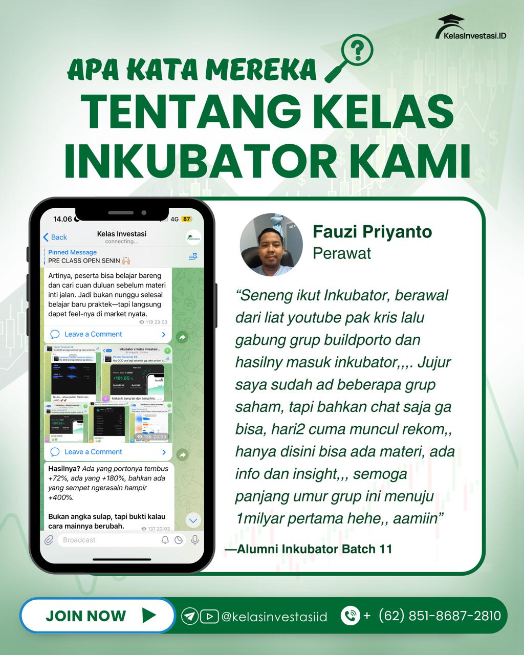 Di Kelas Investasi, Anda akan mendapat komunitas saham yang memberikan informasi atas hasil analisa dan transaksi yang Tim kami lakukan serta tempat bertukar fikiran sesama anggota.