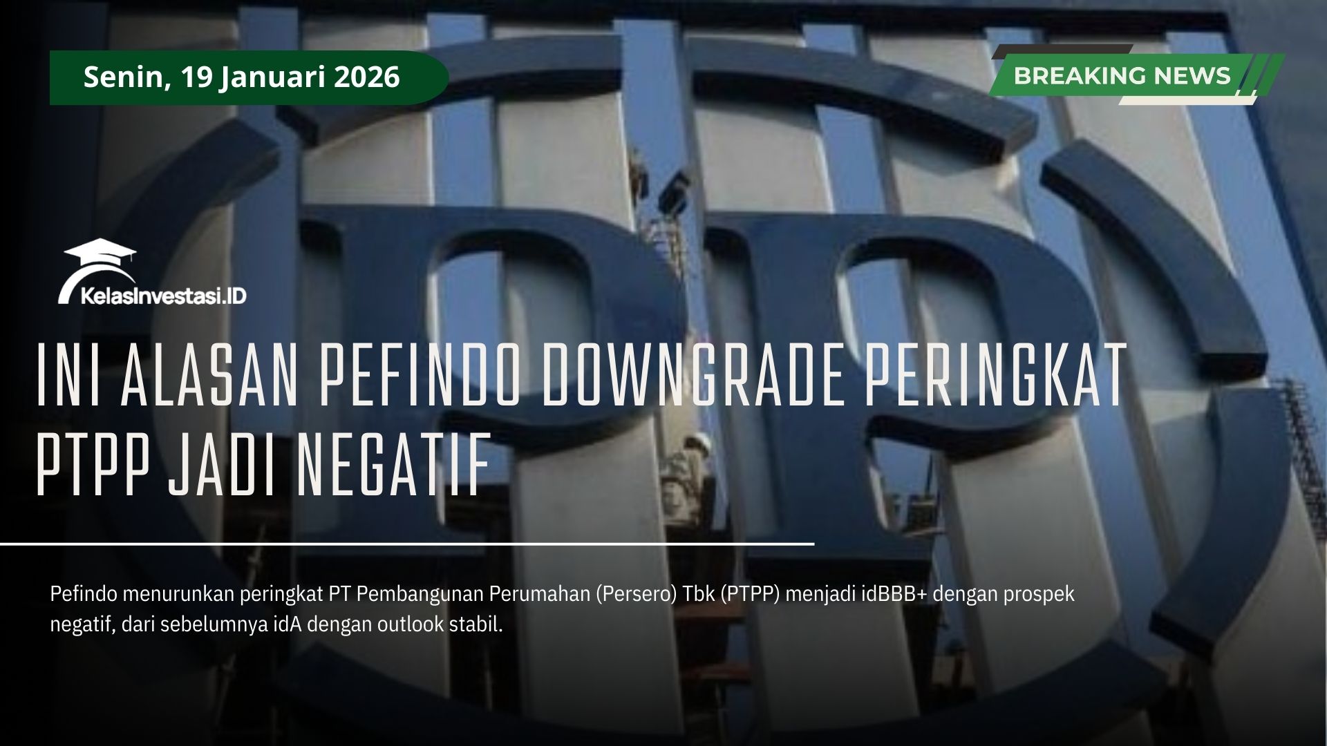 Pefindo menurunkan peringkat PT Pembangunan Perumahan (Persero) Tbk (PTPP) menjadi idBBB+ dengan prospek negatif, dari sebelumnya idA dengan outlook stabil.