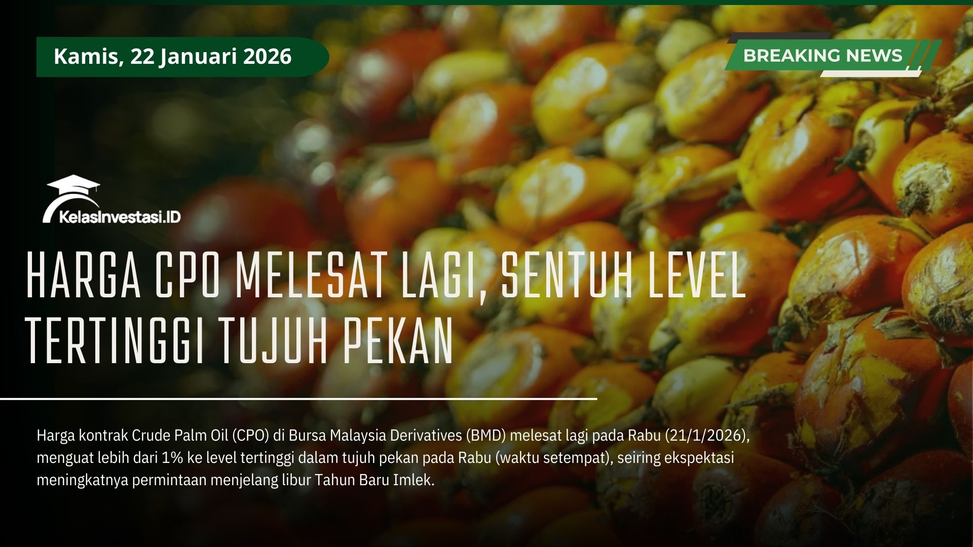 Harga kontrak Crude Palm Oil (CPO) di Bursa Malaysia Derivatives (BMD) melesat lagi pada Rabu (21/1/2026), menguat lebih dari 1%