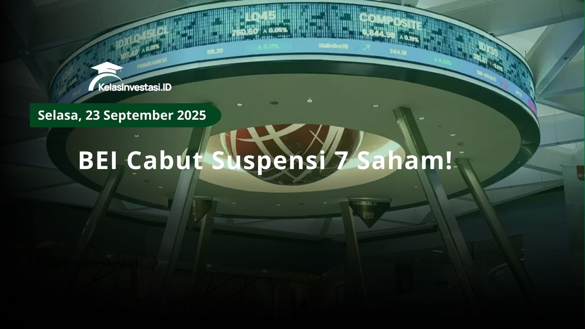 PT Bursa Efek Indonesia (BEI) membuka penghentian sementara atau suspensi tujuh saham, mulai sesi I perdagangan, Selasa (23/9/2025).