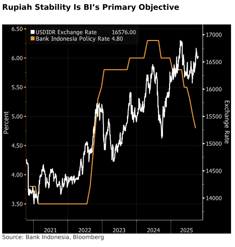 Sepanjang tahun ini hingga September, BI telah menurunkan suku bunga acuan sebanyak lima kali. BI menjadi bank sentral paling agresif di ASEAN karena sudah menurunkan suku bunga acuan 125 bps sepanjang 2025 saja.