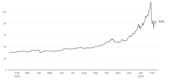Harga perak (XAG) di pasar spot pada penutupan perdagangan Kamis (12/2/2026), turun 10,55% di level US$75,16 per troy ons. Penurunan tersebut terburuk dalam satu minggu.