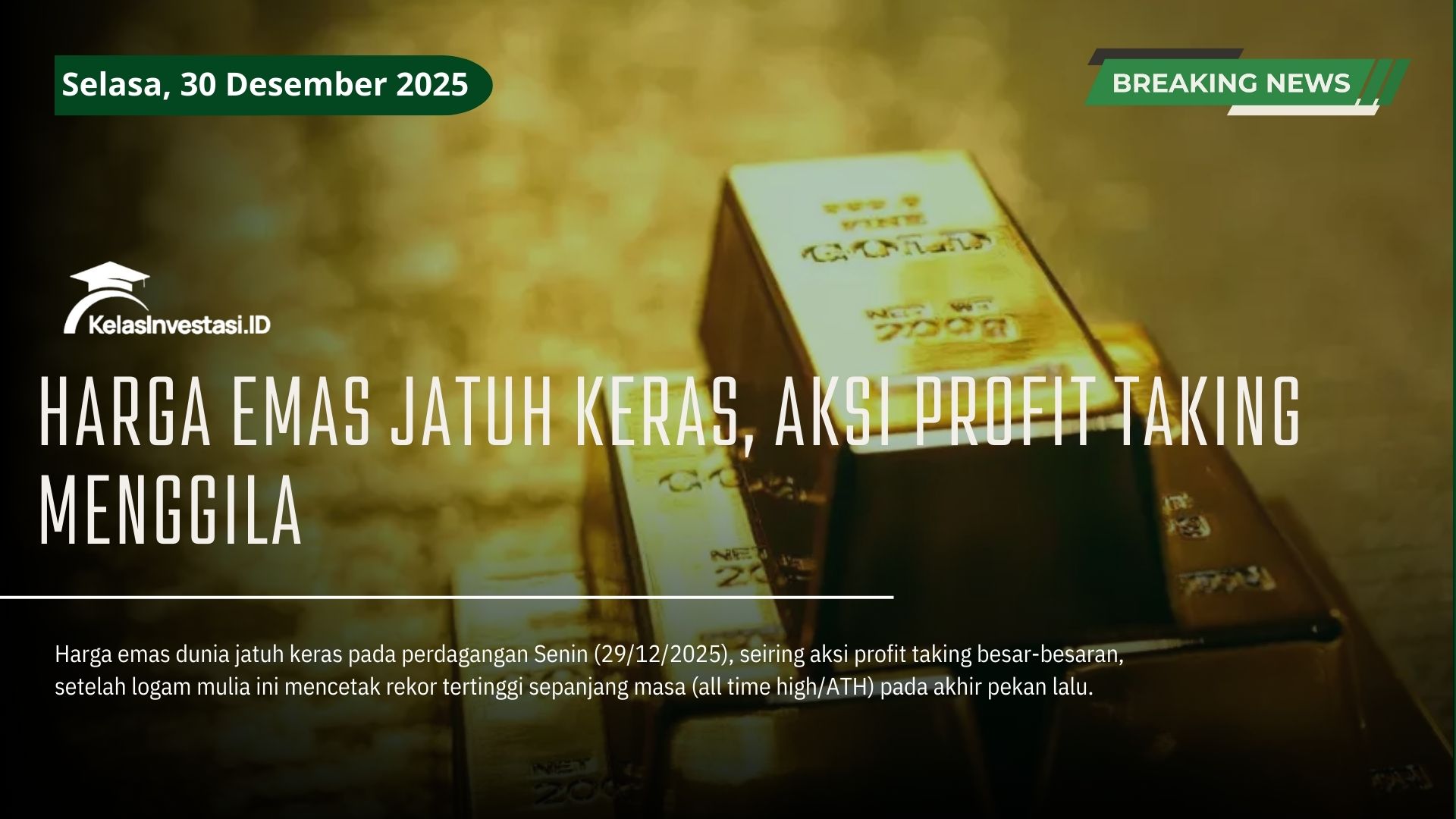 Harga emas dunia jatuh keras pada perdagangan Senin (29/12/2025), seiring aksi profit taking besar-besaran, setelah logam mulia ini mencetak rekor tertinggi sepanjang masa (all time high/ATH) pada