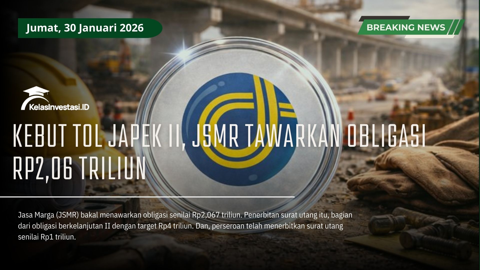 Jasa Marga (JSMR) bakal menawarkan obligasi senilai Rp2,067 triliun. Penerbitan surat utang itu, bagian dari obligasi berkelanjutan II dengan target Rp4 triliun. Dan, perseroan telah