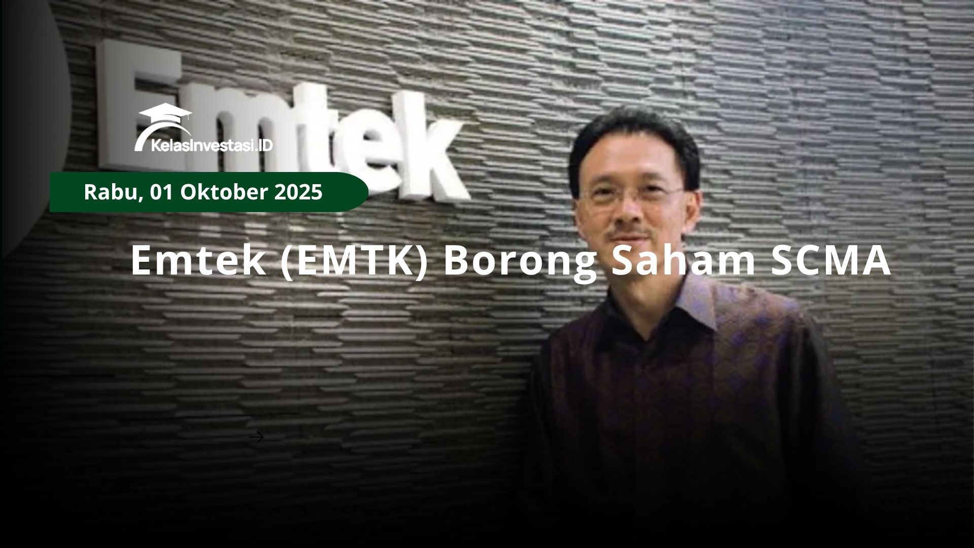Selanjutnya pada 25 September 2025, Emtek membeli 6,5 juta saham SCMA di harga Rp 351 per saham, dilanjutkan pada 26 September memborong 108,5 juta saham SCMA di harga Rp 360 per saham. Serta pada 29 September kemarin, Emtek melanjutkan belanja sebanyak 35 juta saham SCMA di harga Rp 350 per saham.