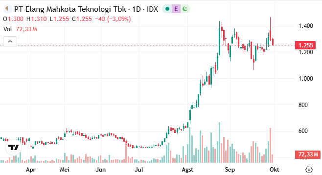 Sementara itu, pergerakan saham Emtek dan Surya Citra Media menunjukkan performa yang apik sejak awal tahun. Baik EMTK maupun SCMA, dua saham milik Keluarga Sariaatmadja ini naik gila-gilaan sepanjang tahun 2025 hingga sekarang (year to date/ytd). Saham EMTK telah melesat 155% ke level Rp 1.255 pada penutupan perdagangan Selasa (30/9/2025). Senada, saham SCMA juga melonjak 101% ytd ke posisi Rp 336 di penutupan perdagangan hari ini.