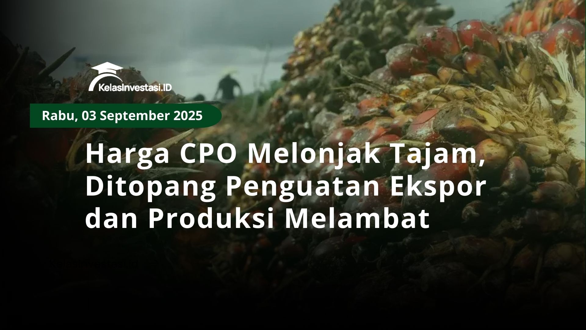 Harga kontrak Crude Palm Oil (CPO) di Bursa Malaysia Derivatives (BMD) ditutup melonjak tajam dalam pada Selasa (2/9/2025). Penguatan itu karena ekspektasi ekspor yang lebih kuat serta pertumbuhan produksi yang melambat.