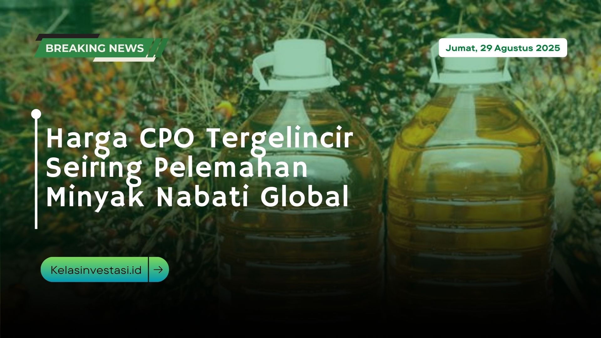Harga kontrak Crude Palm Oil (CPO) di Bursa Malaysia Derivatives (BMD) ditutup tergelincir pada Kamis (28/8/2025). Pelemahan itu sejalan dengan pelemahan di pasar minyak nabati global.