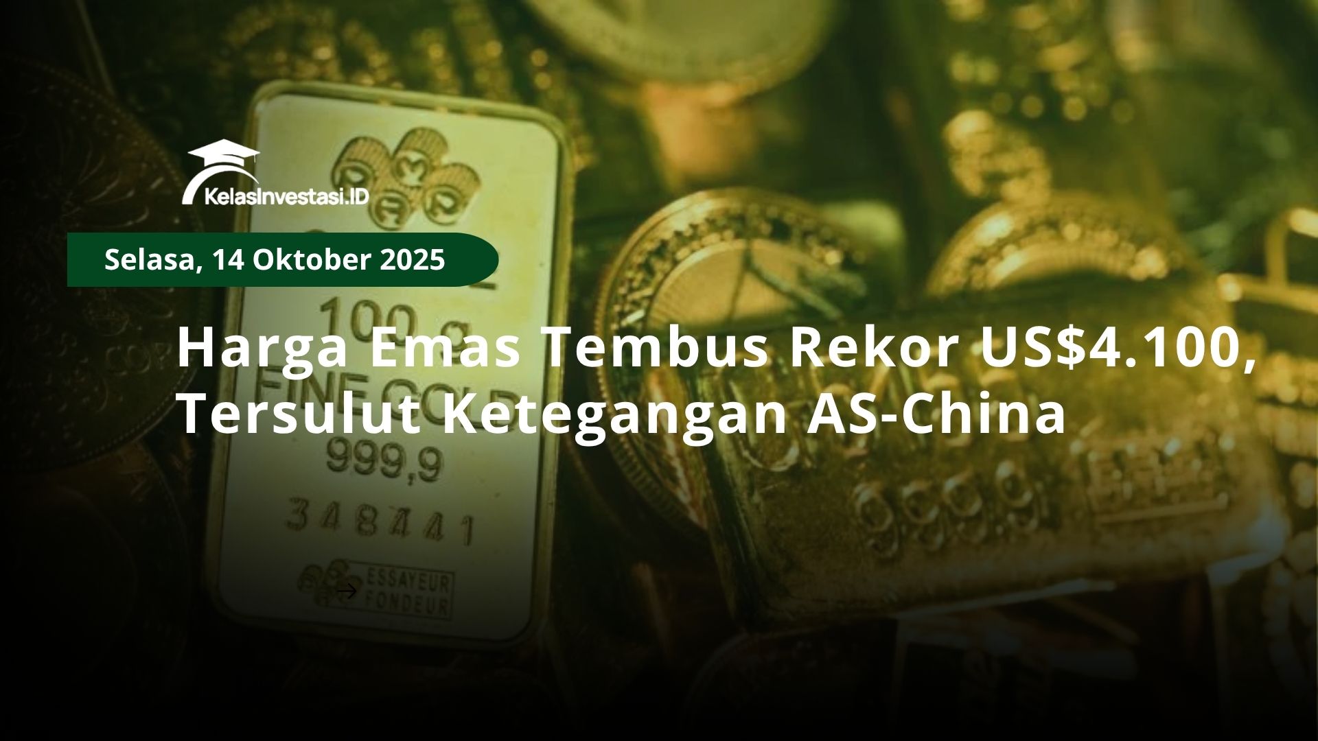 Harga emas mencetak rekor baru dan menembus level US$4.100 per ounce seiring dengan meningkatnya ketegangan dagang AS–China dan ekspektasi pemangkasan suku bunga The Fed.