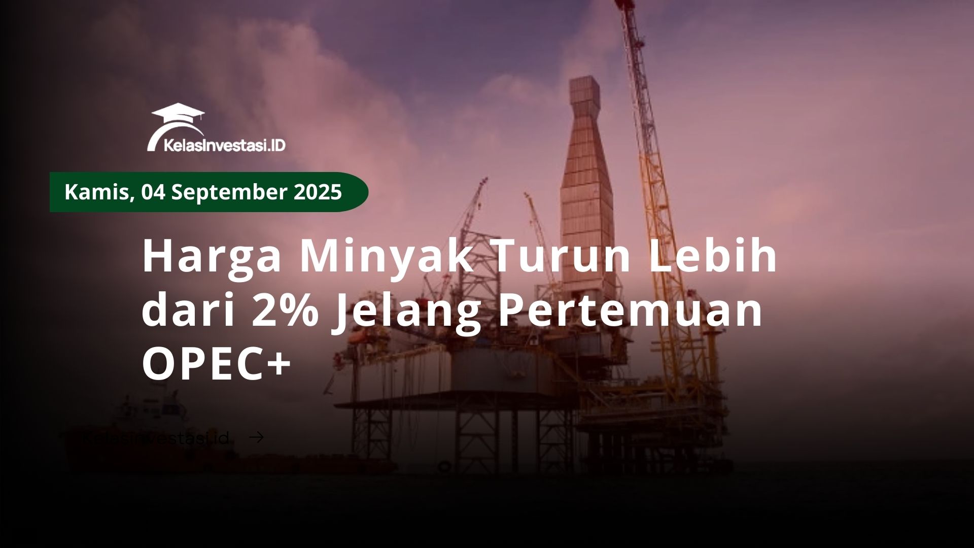 Harga minyak dunia melemah lebih dari 2% pada perdagangan Rabu (3/9/2025), menjelang pertemuan akhir pekan produsen OPEC+ yang diperkirakan akan membahas rencana penambahan target produksi pada Oktober mendatang.