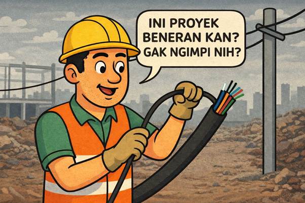Ini poin penting. Karena di proyek jaringan, yg dibutuhkan itu bukan cuma kabel, spektrum, & modal. Yg dibutuhkan jg adalah :
