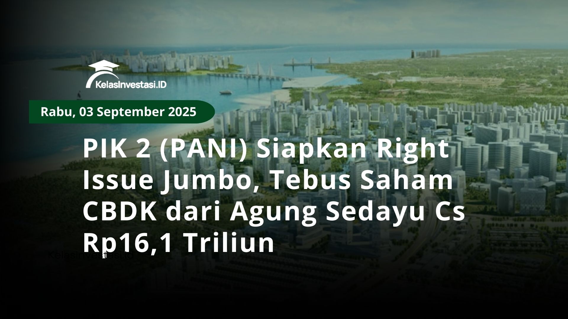 PT Pantai Indah Kapuk Dua Tbk (PANI) mengumumkan rencana penambahan modal dengan memberikan Hak Memesan Efek Terlebih Dahulu (PMHMETD) III alias right issue. Perseroan akan menerbitkan sebanyak-banyaknya 1,21 miliar saham baru bernilai nominal Rp100 per saham dari portepel yang akan dicatatkan di Bursa Efek Indonesia (BEI).